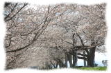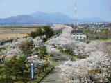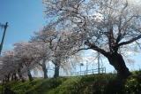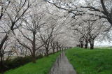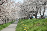 信濃川大河津分水路の桜並木が満開で、