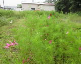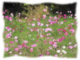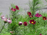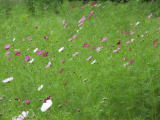 5月14日に種まきをしたコスモスが見ごろになりました。連日異常な暑さの中ですが、ようやく見ごろとなりました。これまでに暑い中でしたが、3回ほど草取りをしながら育ててきました。