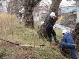 信濃川大河津分水路堤防桜並木の開花前の環境整備を、信濃川河川事務所大河津出張所のご協力を得て実施しました。当日は、パナソニック新潟工場の社員の方々からもボランティアとして参加していただきました。大変ありがとうございました。小雨の降る中でしたが、不用枝木の剪定や雪による折れ枝処理、風や雪などで落ちた枝の集積などの活動を行いました。