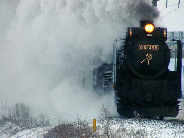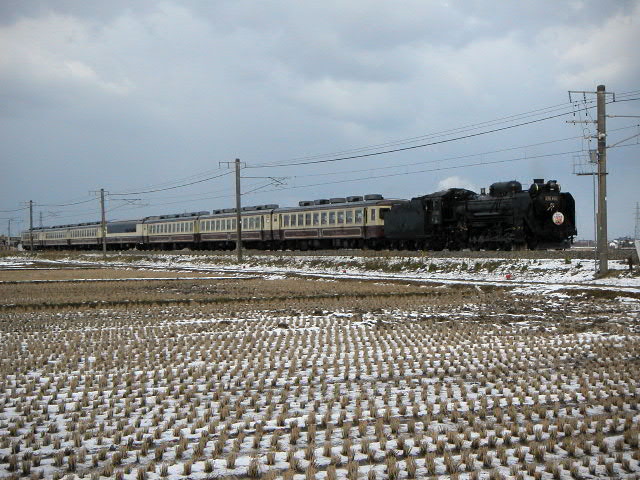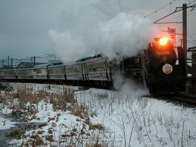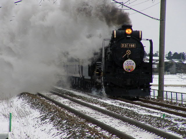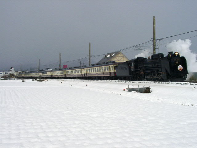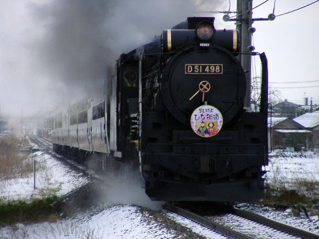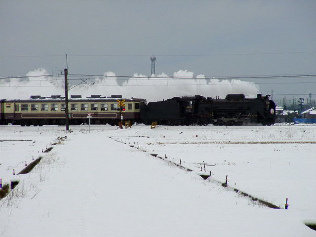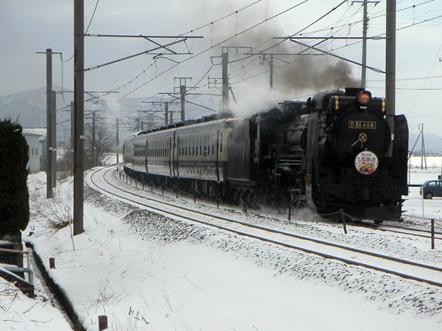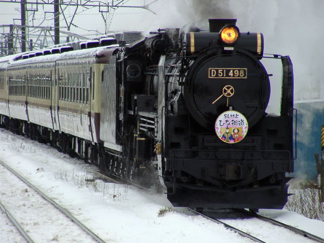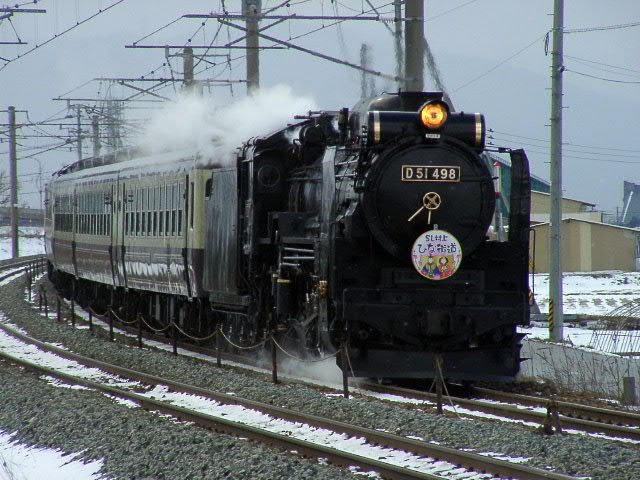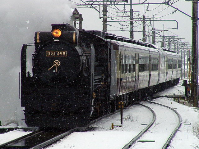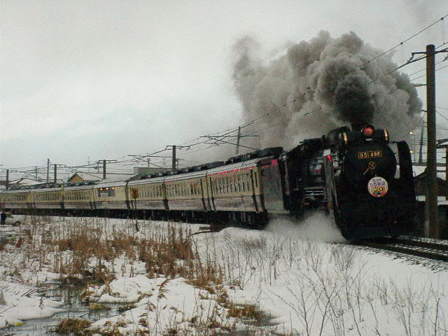 04年3月6・7日、新潟−村上間で運行。牽引機関車はD51498。ばんえつ物語用客車を率いる。