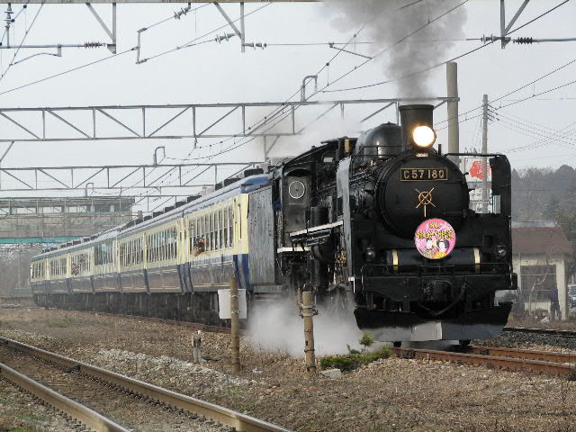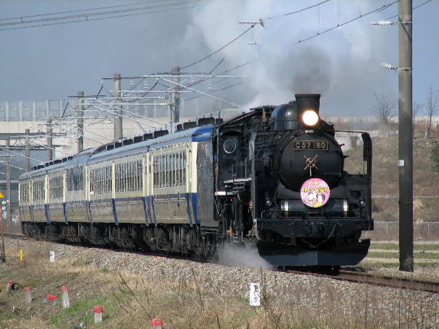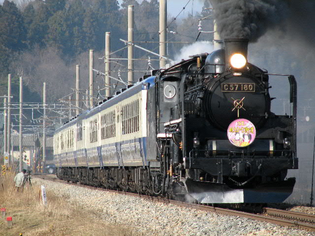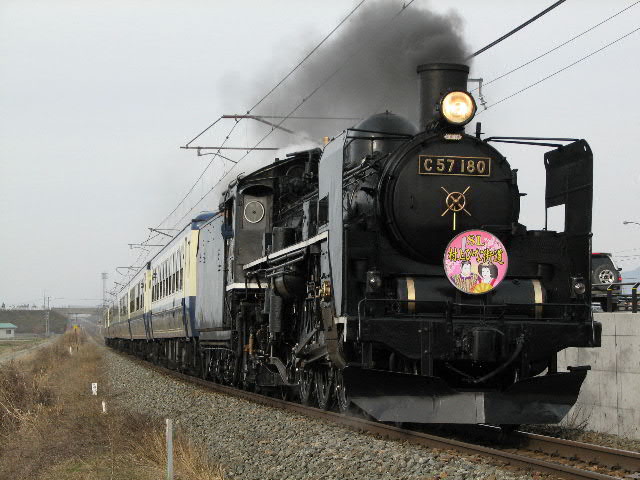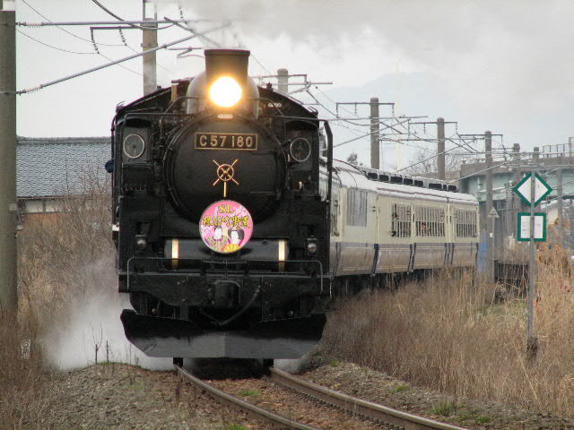 08年3月22・23日、新潟−村上/村上−新津間で運行。牽引機関車はC57180。ばんえつ物語用客車を率いる。