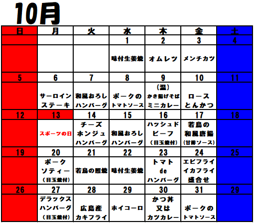 10月 ランチ予定表